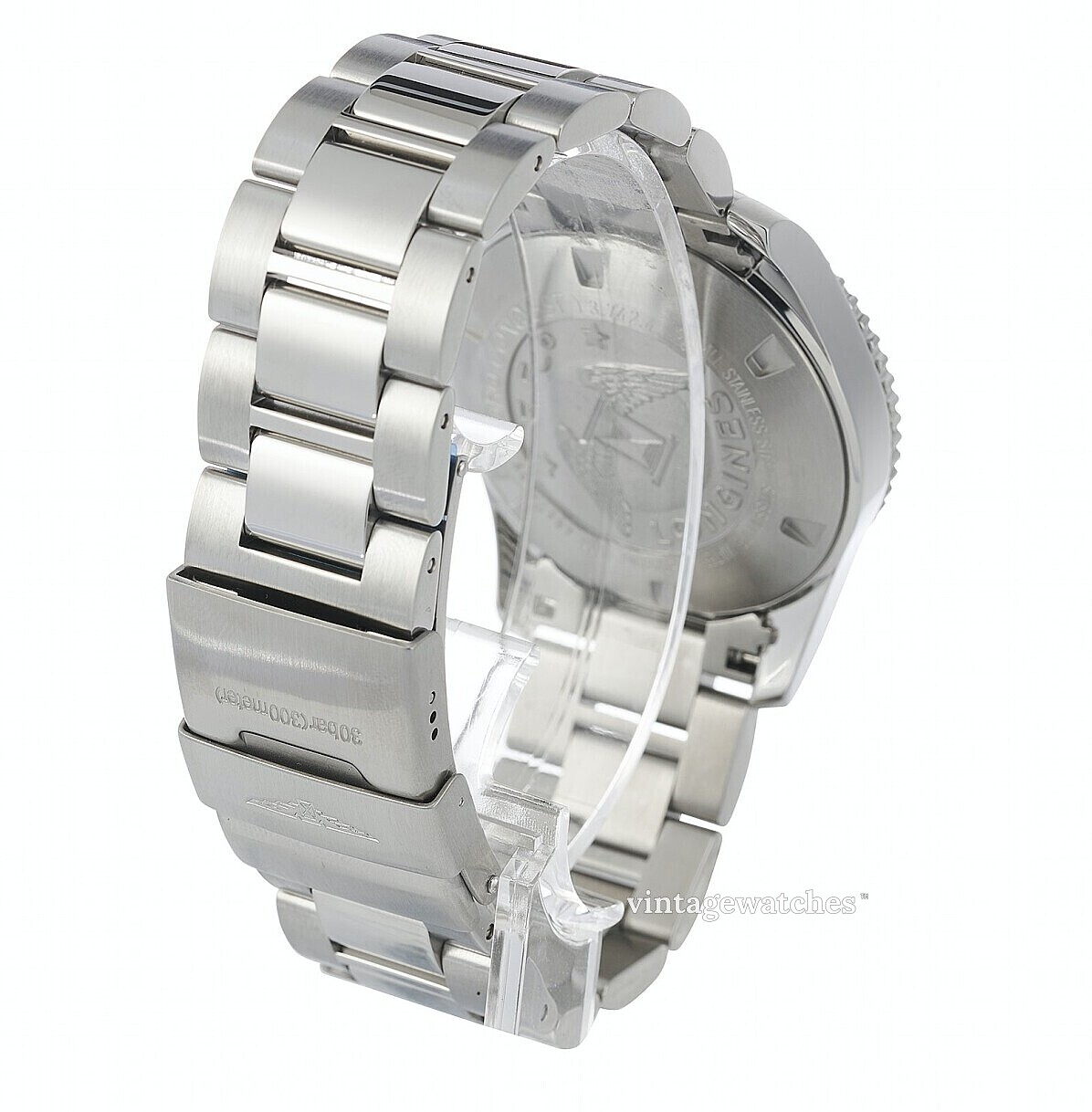 | Bezel (krans): | Stål, blå, roterende mod uret |