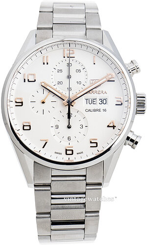 | Urskive: | Sølv med arabertal og indeksmarkeringer, selvlysende visere |
