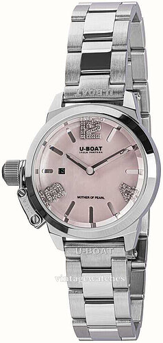 | Urskive: | Rosa perlemor med krystaller (strass), selvlysende visere |